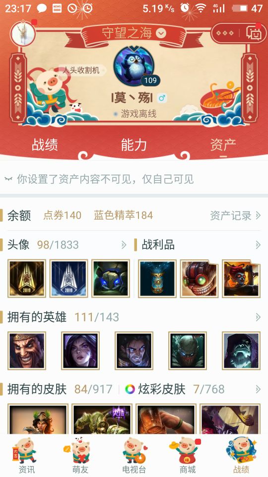 首页 > 租号大厅 > 英雄联盟 > 联盟一区/守望之海 > ❤守望❤111英雄84皮肤❤价格低❤适合开黑