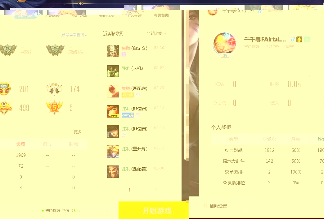 首页 > 租号大厅 > 英雄联盟 > 黑色玫瑰/黑色玫瑰 > 全英雄。314个皮肤 黄金框框.排位黄金3.可以打排位