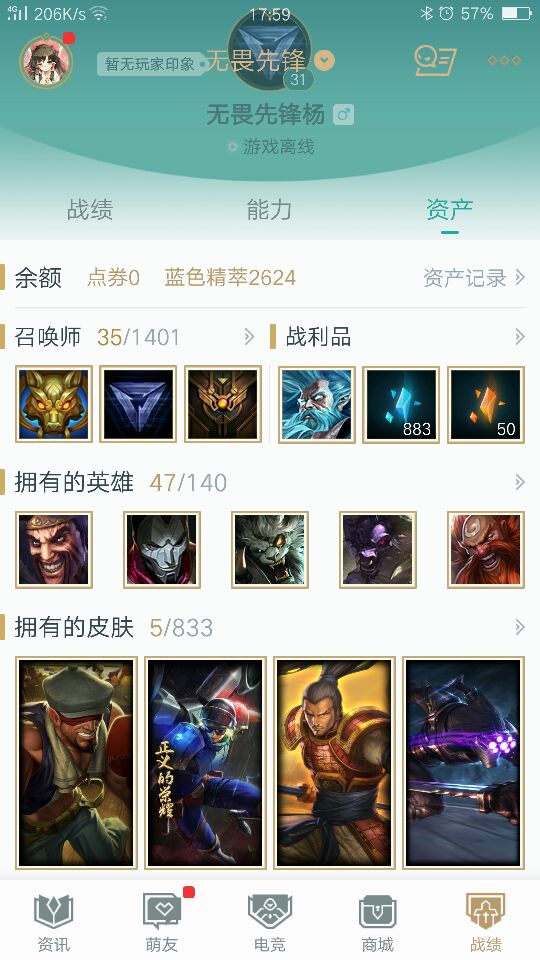 adc英雄偏多 打野 偏多皮肤少但是6300常用英雄齐全卢锡安 vn ez 德莱文 戏命师