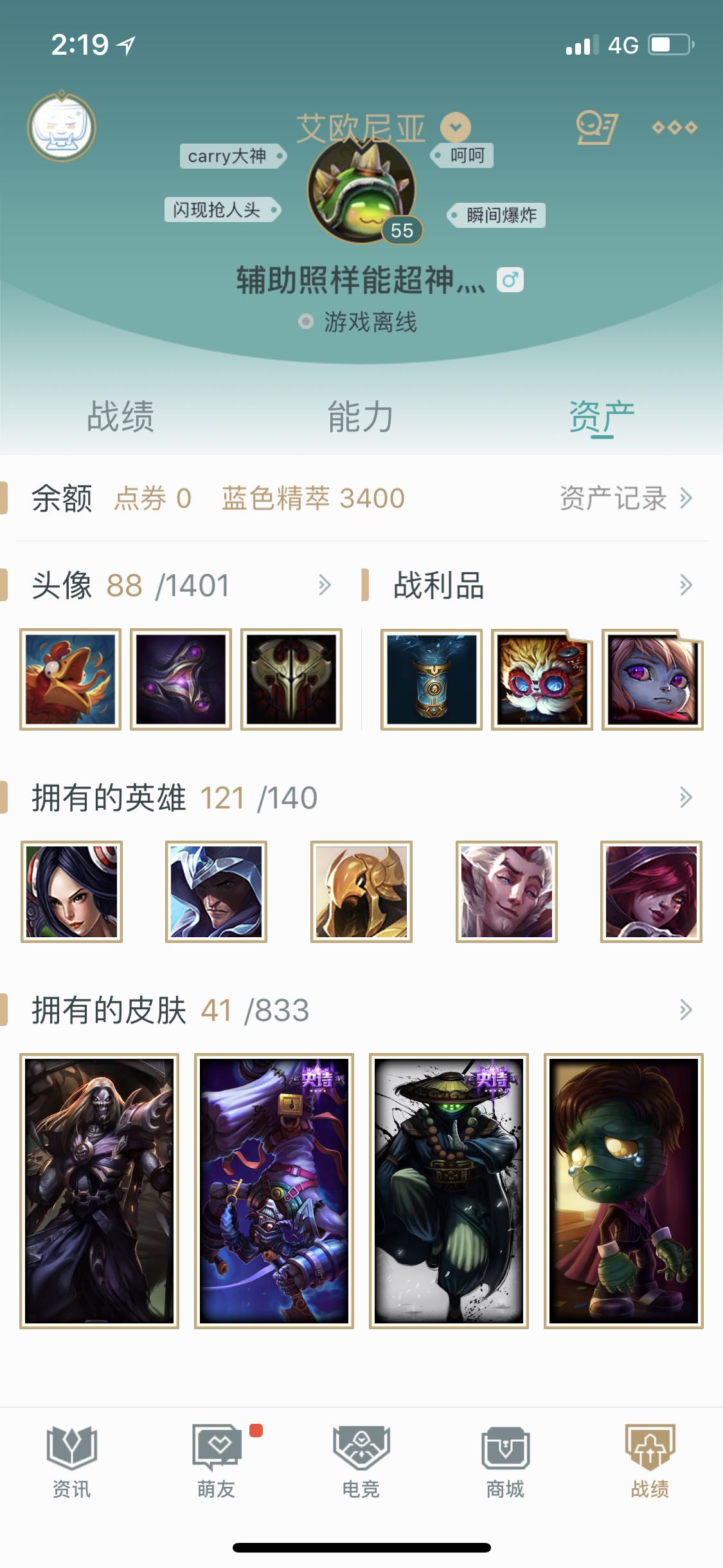 首页 > 租号大厅 > 英雄联盟 > 艾欧尼亚/艾欧尼亚 > 艾欧尼亚区,有121个英雄,41个皮肤,白银段位 租号可以打排位匹配,但不可消极比赛挂机等违反游戏规定的行为…