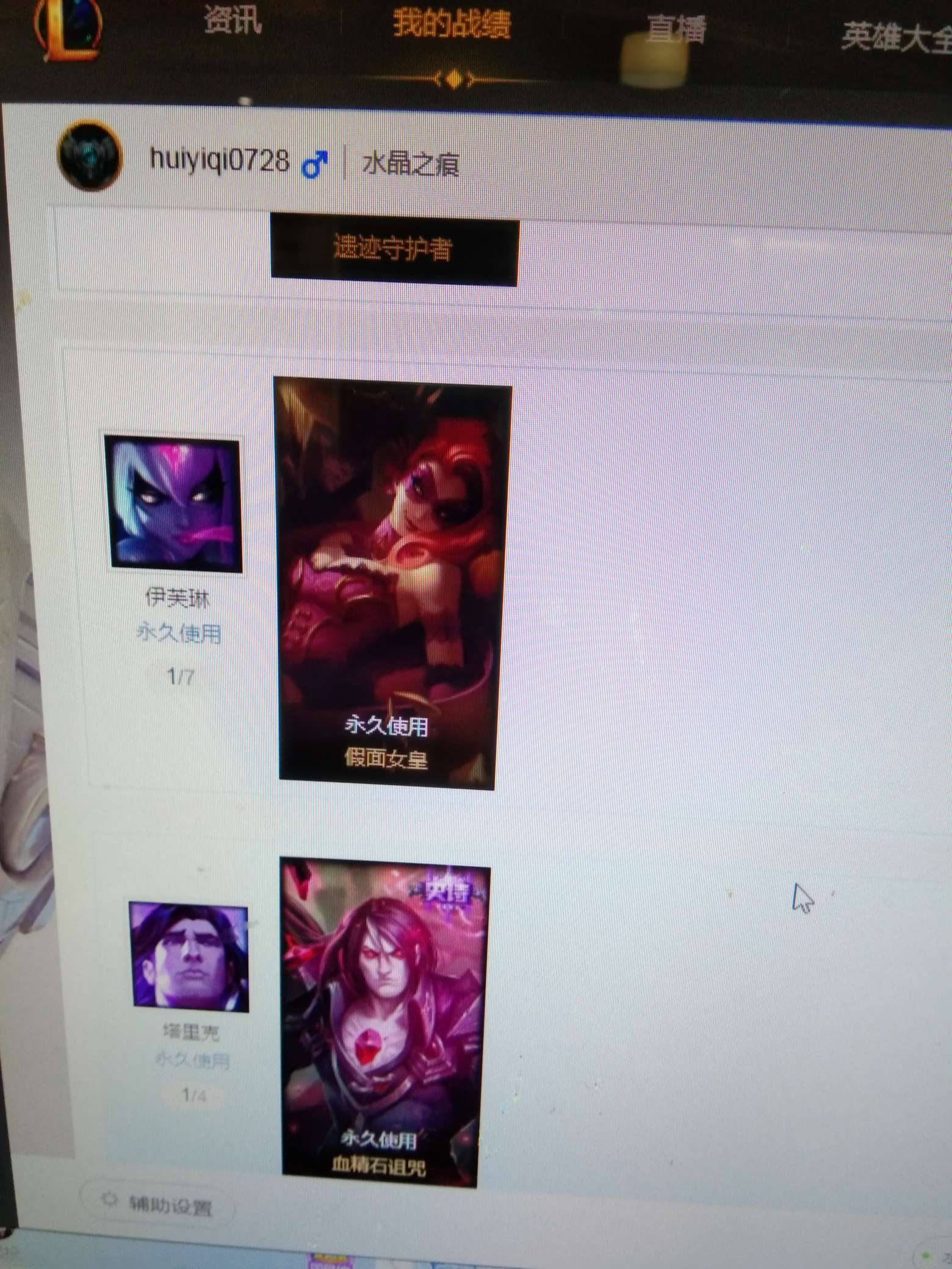 首页 > 租号大厅 > 撸阿撸 > 电信区/水晶之痕 > 英雄联盟 水晶之痕 小号只有56个英雄 ,12个皮肤源代码妖姬皮肤,假面女皇,战地机甲,可