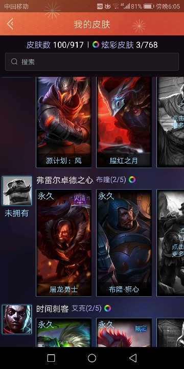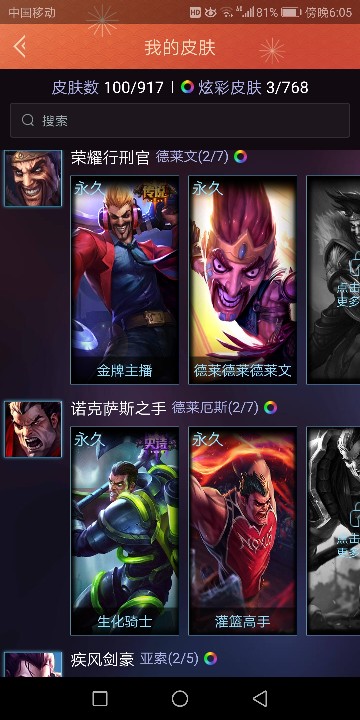 97个英雄105个皮肤有电玩狐狸防爆男枪至高之拳鸡年限定皮肤德玛大元素使
