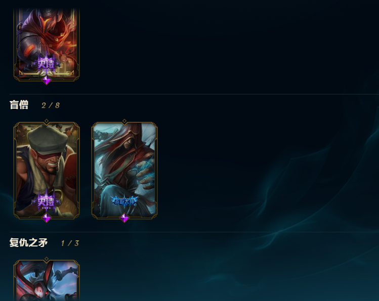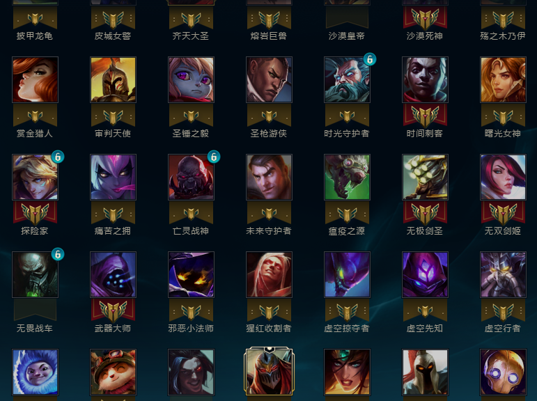 亚索原计划、剑魔仲裁、阿卡丽腥红、艾希女皇 盲仔拳王 魔装机神等等 大部分热门英雄都有 带妹虐菜必备 可打排位