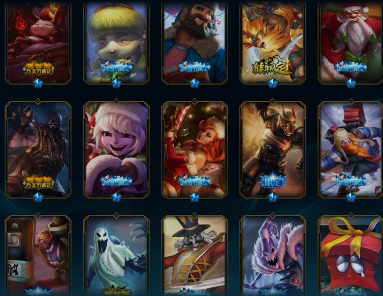 比尔吉沃特,78英雄,79皮肤,万圣节很多,冰雪节很多,猴年限定等