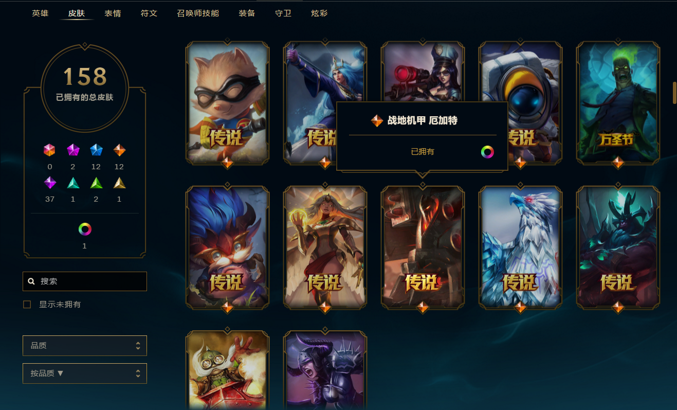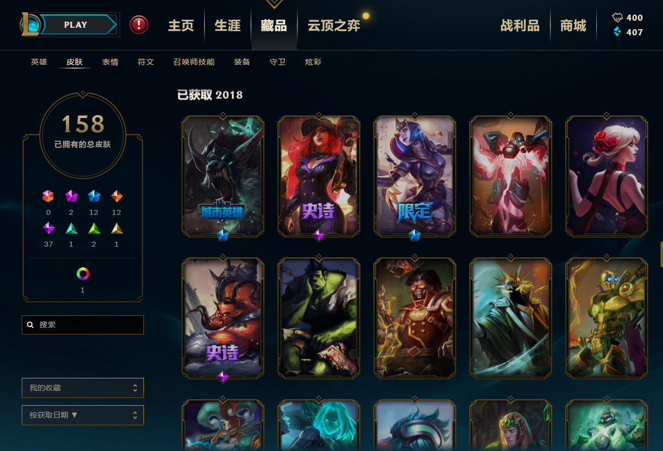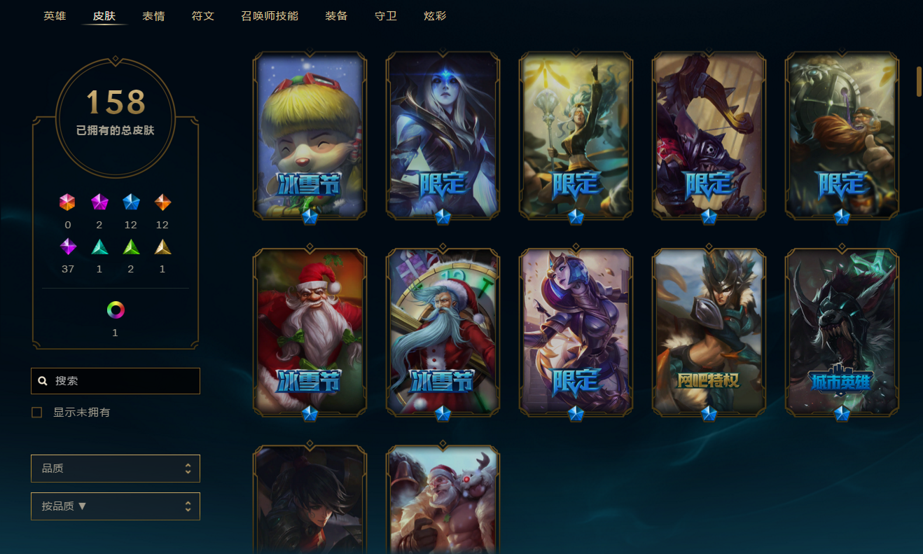 源计划亚索 摩登薇恩 烈焰奥拉夫屠龙勇士/巡逻警官、暗黑魔龙 女警狙击、单身贵族狗头、大天使凯尔、丛林侠盗艾希、战场公主、海克斯科技迦纳、五杀摇滚手、钢铁之心希维尔、双重冰晶凤凰、荒野嫖客等等很多皮肤