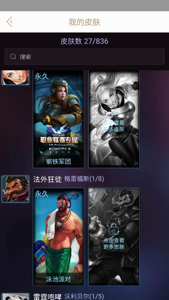 黑色玫瑰 瞎子 男枪泳池派对 skt 劫 光辉女郎钢铁军团 140级 许多限定皮肤 全英雄