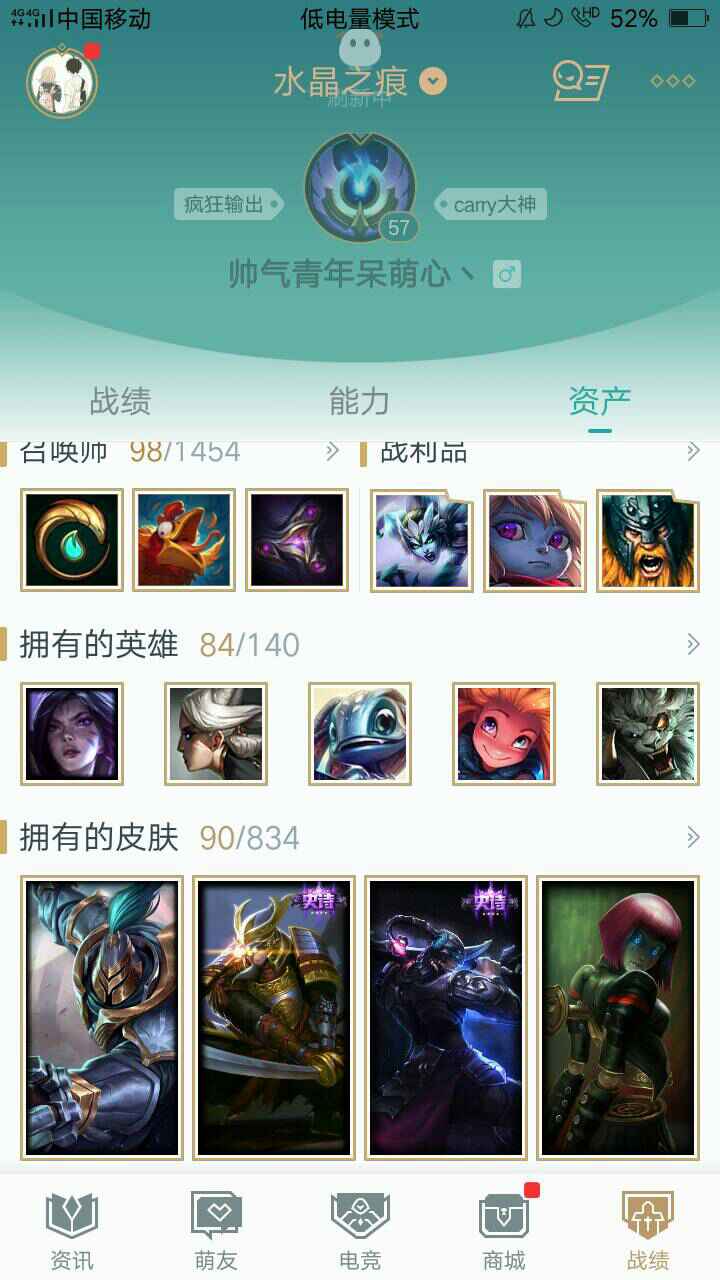 水晶之痕skt瞎子美猴王冰雪节猪妹,剑姬皮肤满,90皮肤84英雄