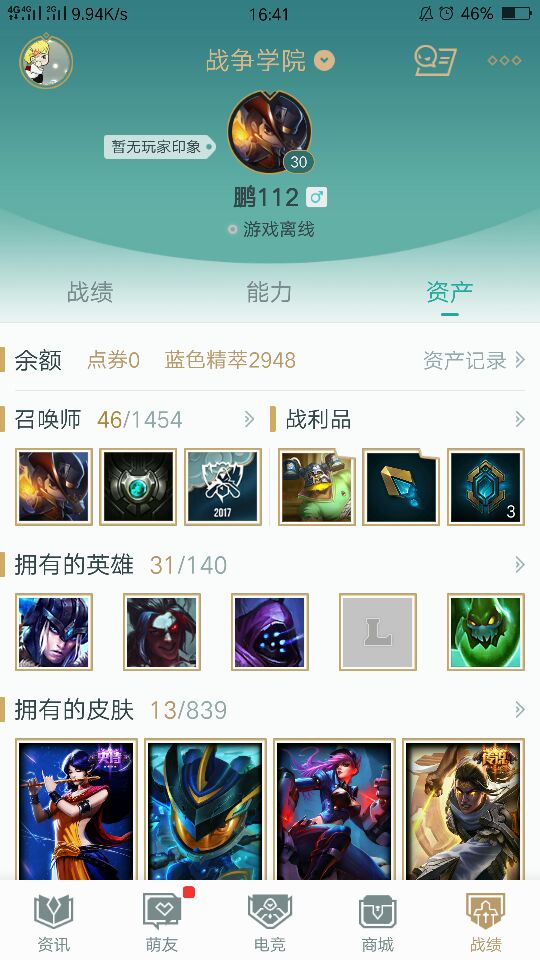 【特价优惠10小时3元 5h/1.5¥】战争学院号,31英雄,13个皮肤,不挂机随便你玩。