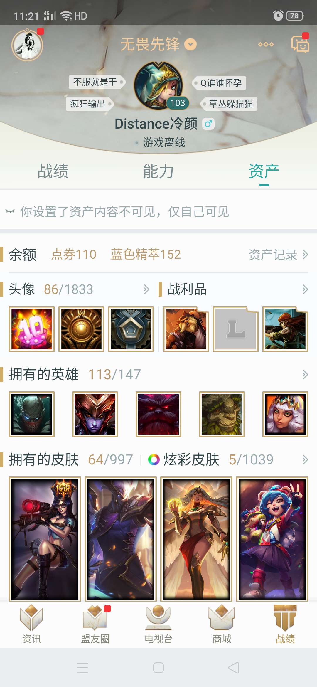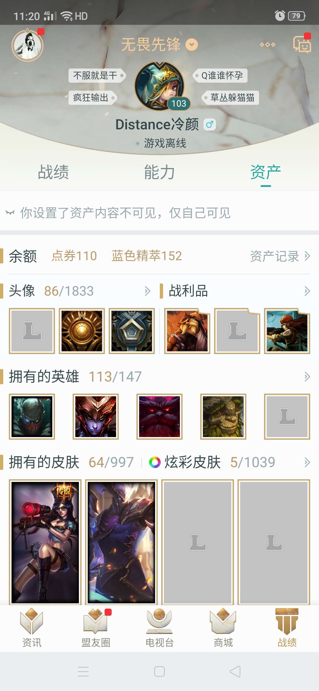 网四,英雄110皮肤50。有几个限时皮肤