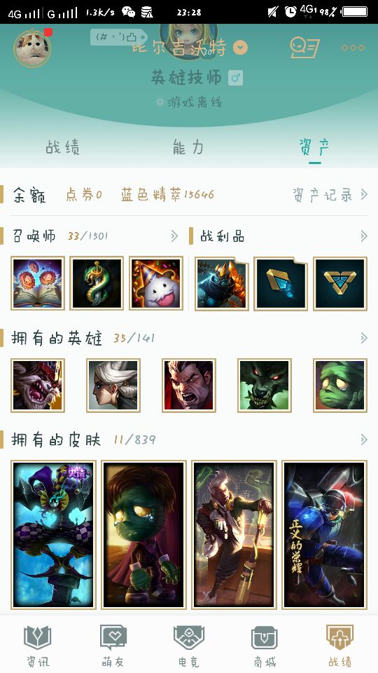 本人的一个小号,英雄和皮肤不太多,但绝对够用,物美佳廉,欢迎各位老爷前来顶号!