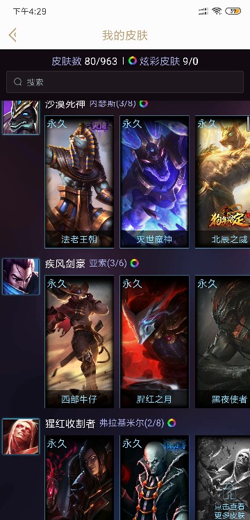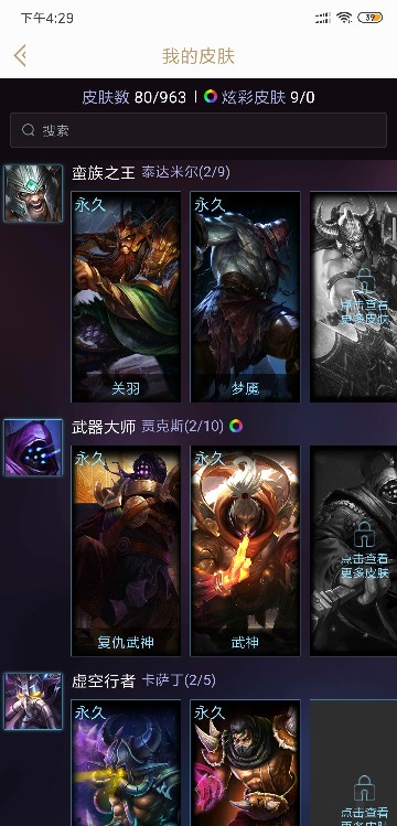 有80个英雄,80个皮肤,黎明,黑夜,神拳,关羽等皮肤狗头年限