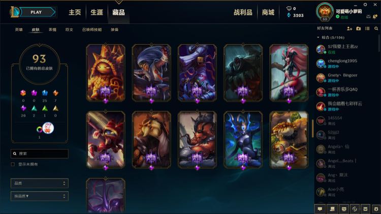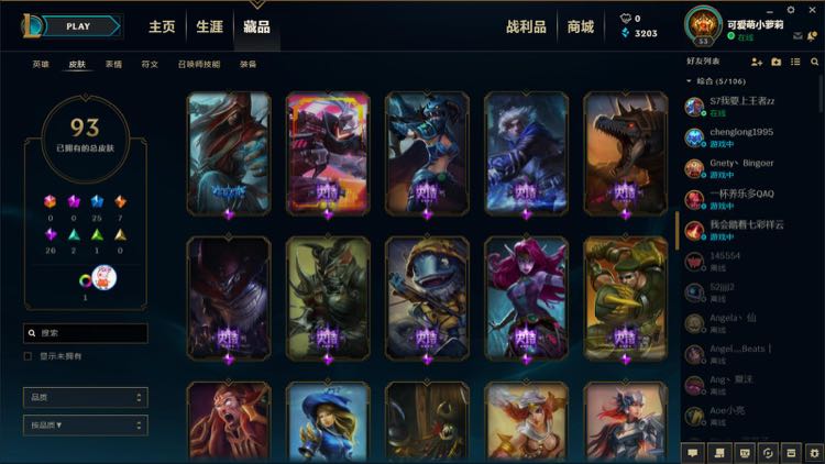 「诺克萨斯萌妹号」92皮肤 105英雄 常玩的都有