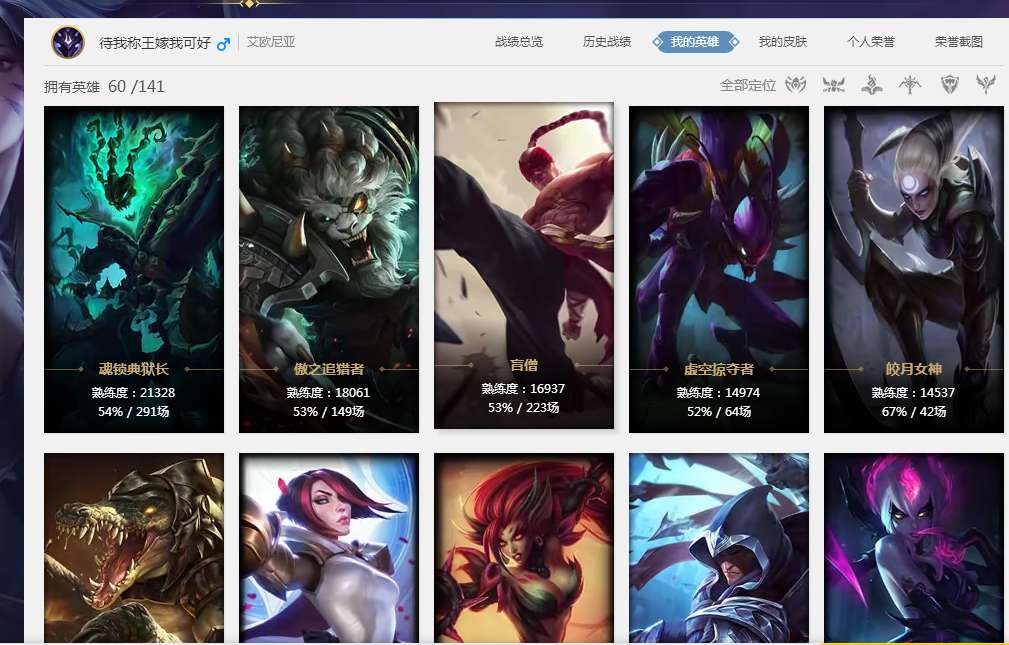 艾欧尼亚普通号60个英雄31个皮肤适合朋友一起开黑用段位白银