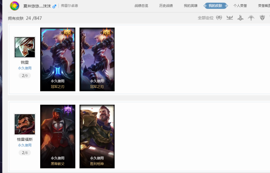 弗雷尔卓德 瞎子世界杯限定 瑞文双冠军限定 限定狗头 原计划亚索 原计划劫等等 热门英雄差不多都齐