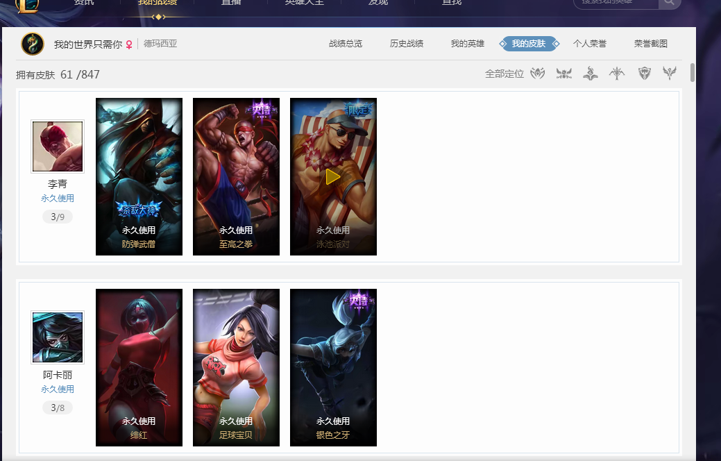 德玛西亚无段位带分号,皮肤61 可排位 不可逃跑,不可骂人,不可上挂!