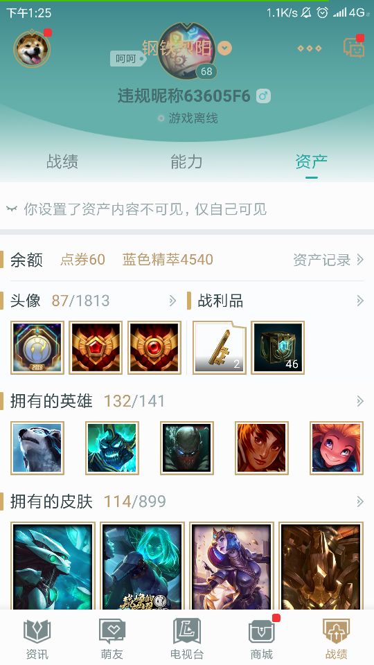 首页 > 租号大厅 > 英雄联盟 > 联盟三区/钢铁烈阳 > 钢铁烈阳,黄金段位,可排位,135多只英雄,个人号!