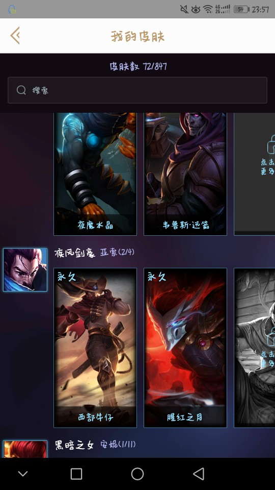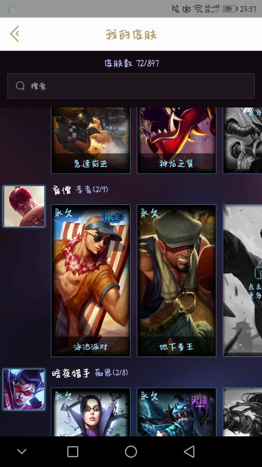 有龙琴,神龙之翼,泳池瞎子,腥红亚索,msi妖姬等限定热门皮肤