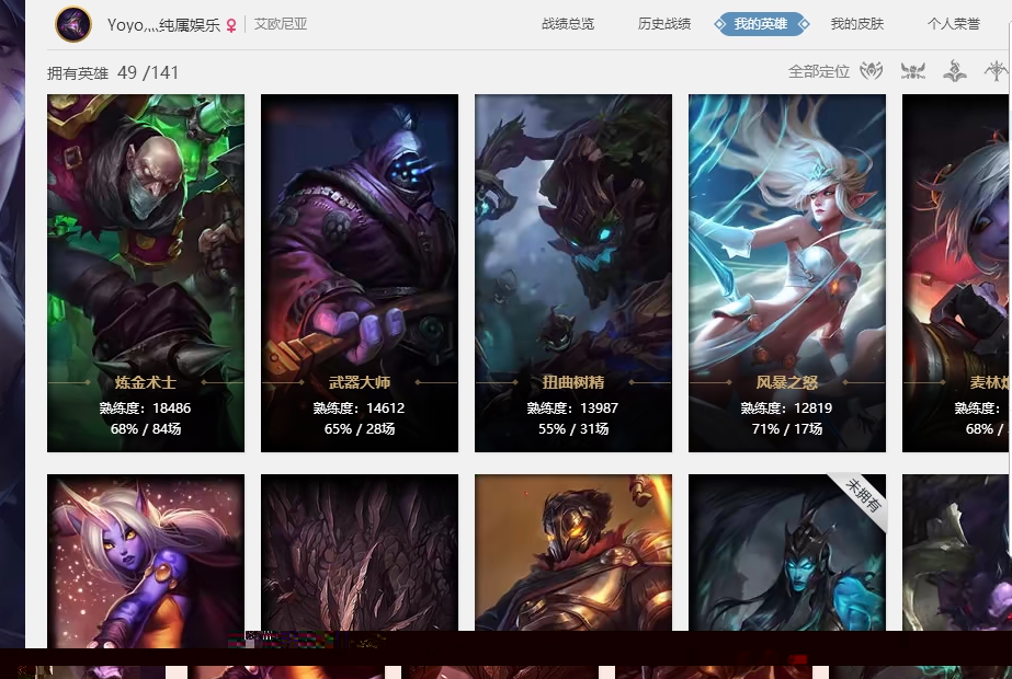 艾欧尼亚 70英雄 黄金段位可以排位40+皮肤电玩琴女,玉剑剑圣 排位匹配都能玩