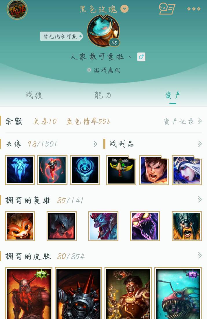 黑色玫瑰号 妹子ID 85英雄 80皮肤 劫的冠军皮肤寡妇猩红之月皎月猩红之月火男丧尸火女蛇年限定流浪恶魔男爵风女限定大树冰雪节
