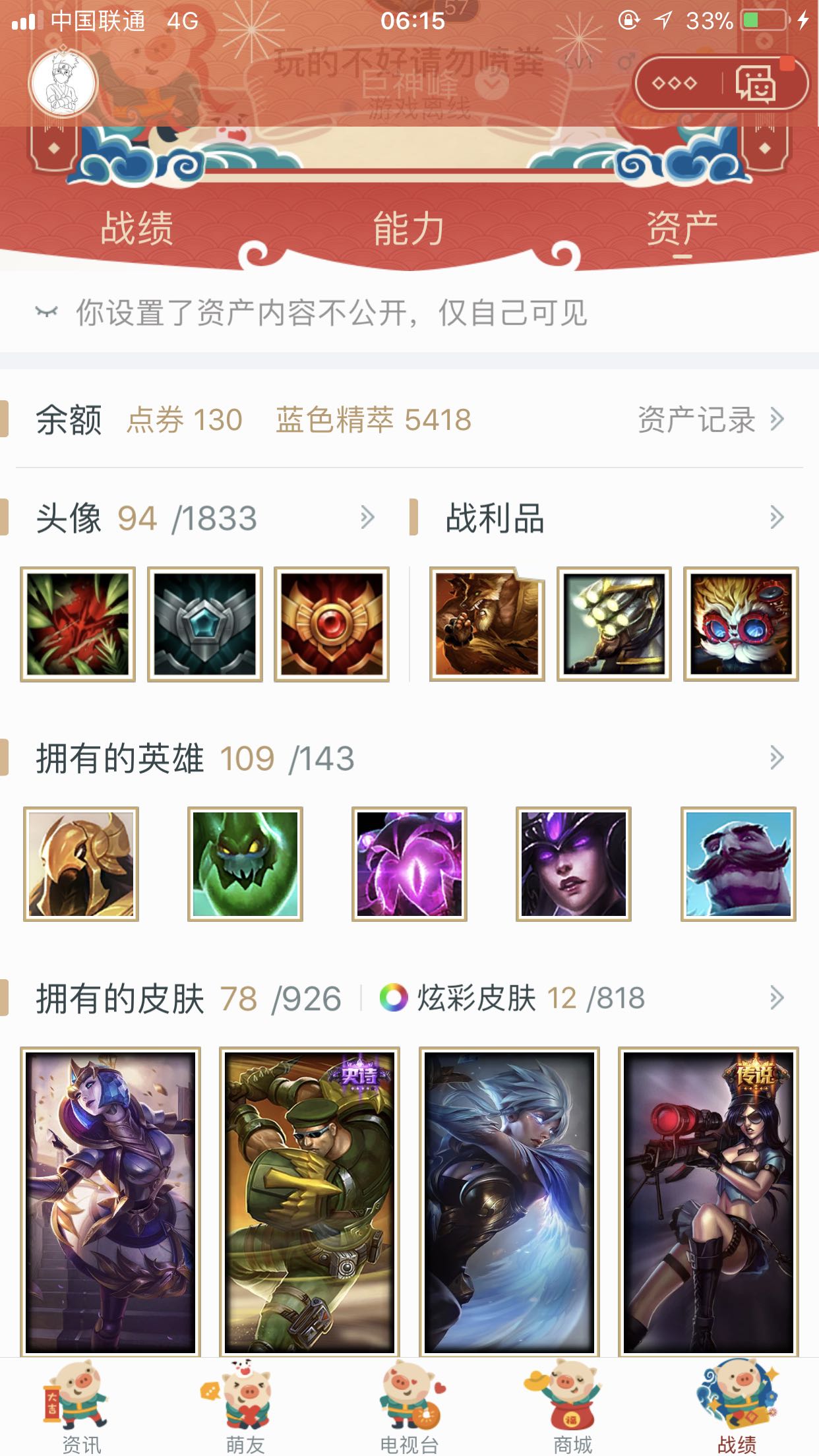 巨神峰109英雄 78皮肤 龙的传人龙瞎 未来战士 电玩黎明使者瑞文等等 保证不顶号 没裁决 匹配排位都可以 最低价和朋友双排必备