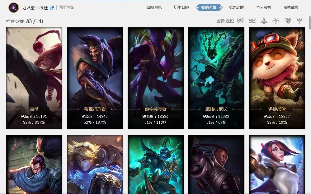 雷瑟守备 黄金段开黑号 83英雄 17皮肤 黄金框