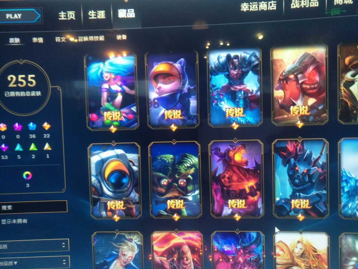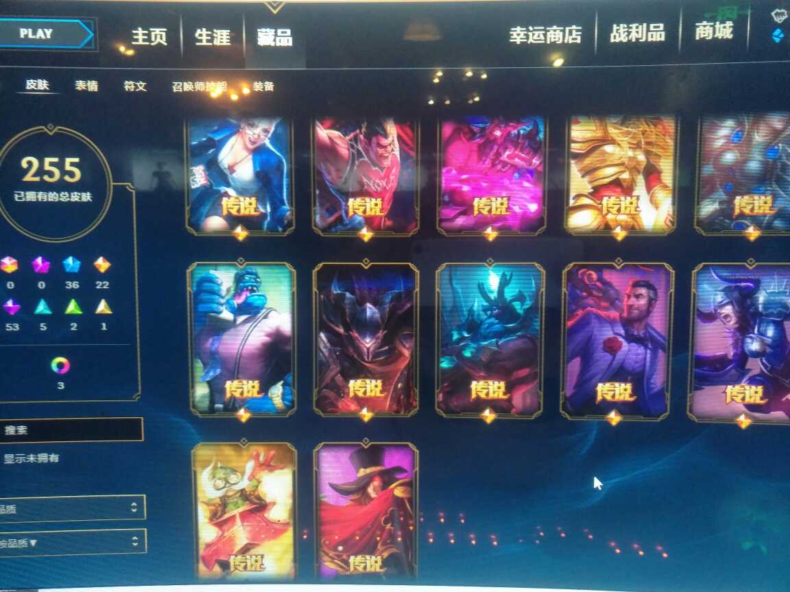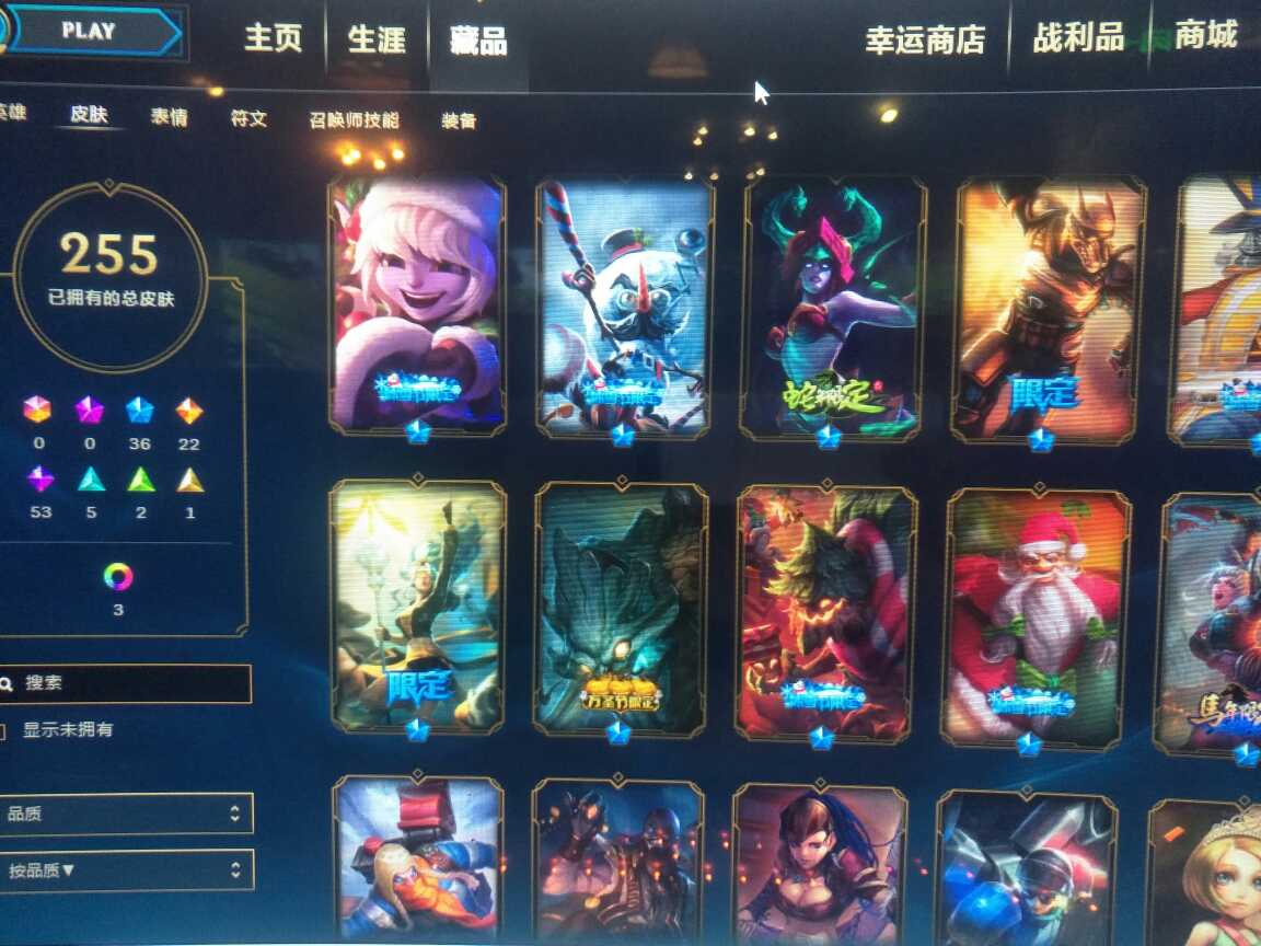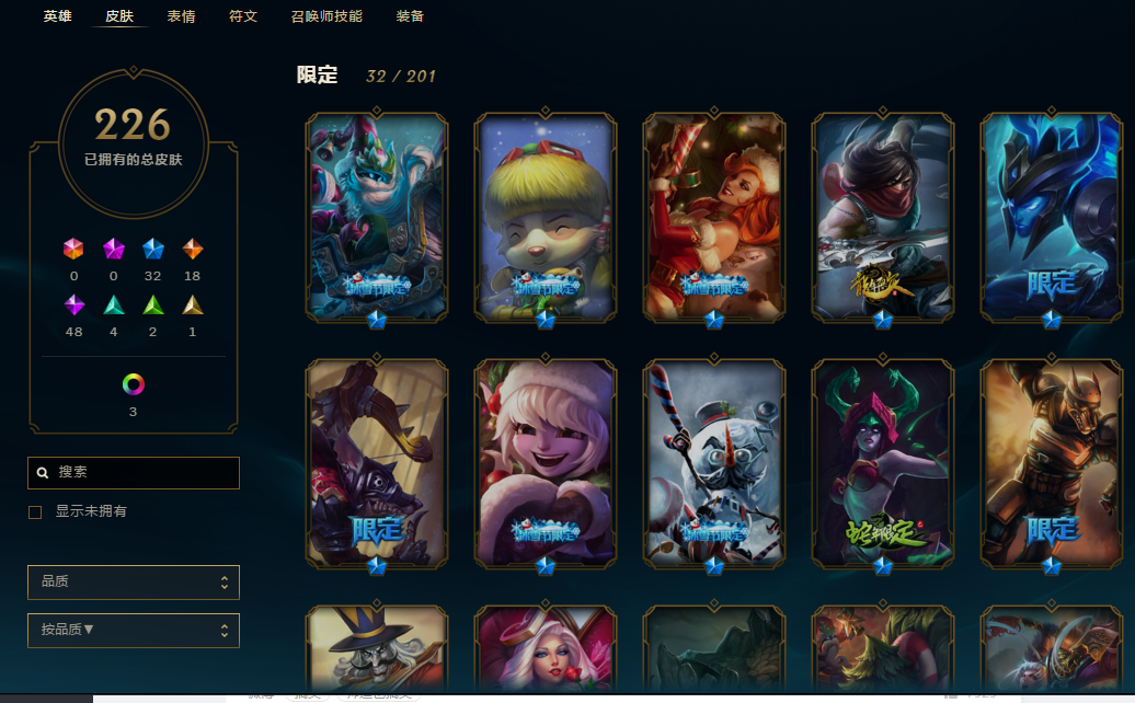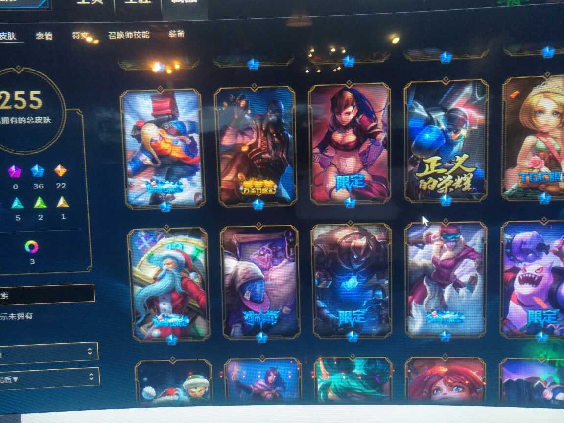 124英雄, 280个皮肤 寒冰的新皮肤有, 花木兰 龙刀 冰雪限定基本都有 很多限定