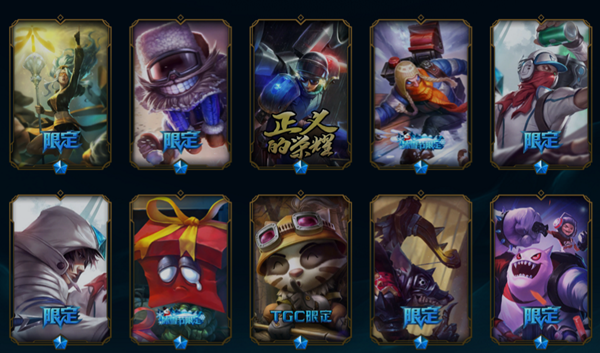200皮肤/龙的传人/龙瞎/龙虾/大元素使/未来战士EZ女警/卧虎藏龙/源代码妖姬/SKT牛婕拉烬/