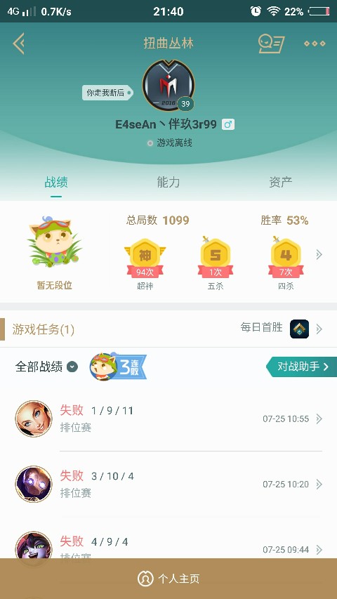 • 游戏区服:撸阿撸 / 网通区 / 扭曲丛林