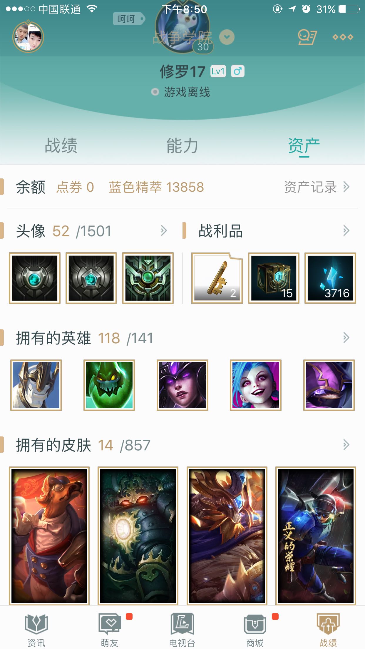 首页 > 租号大厅 > 英雄联盟 > 联盟二区/战争学院 > 战争学院,30级,118个英雄,14个皮肤。