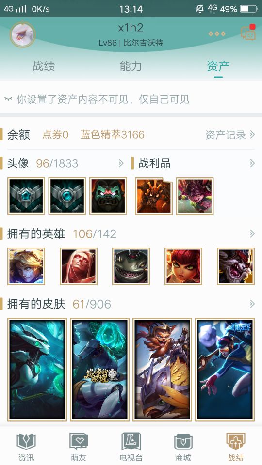 首页 > 租号大厅 > 英雄联盟 > 联盟四区/比尔吉沃特 > 英雄联盟:106英雄65皮肤 比尔吉沃特 可打排位赛