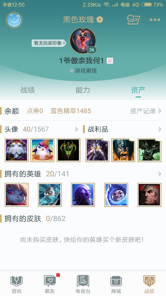 黑色,新号36级,有20个英雄和20个英雄碎片