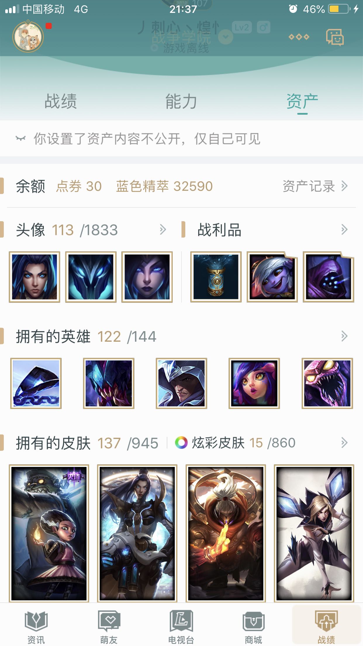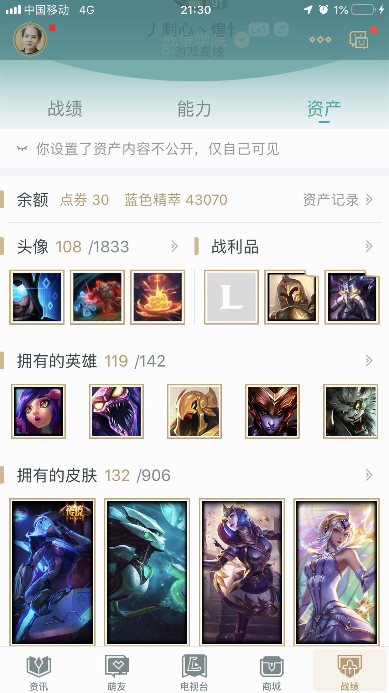战争学院号 欢迎来租此号 英雄很多 开黑带妹必选 谢谢 此号暂时不常玩 租客请温柔对待 金币请不要乱用 如果实在想玩的英雄 此号却没有 可以用来买英雄 别乱花在其他地方 一直有个梦想 想存个一百万金币 哈哈 欢迎大家帮来租号