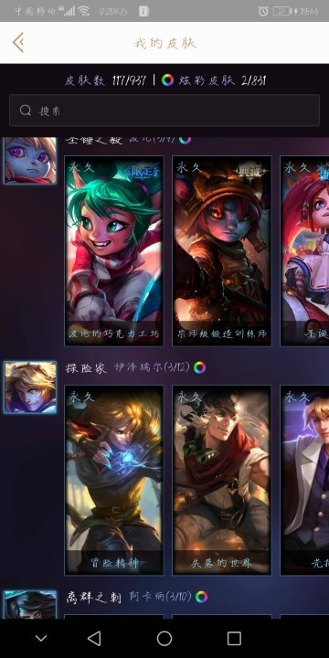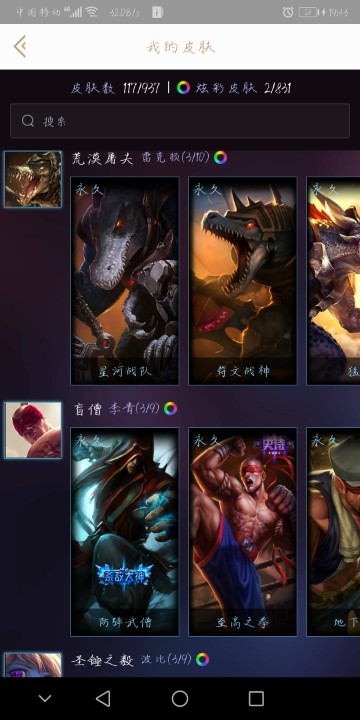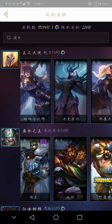 皮城警备,123英雄,117皮肤,合金亚索,电玩瑞文,关羽蛮王等。
