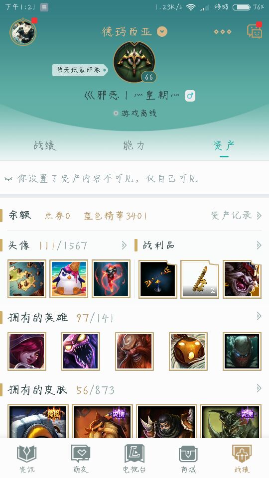 • 游戏区服:撸阿撸 / 网通区 / 德玛西亚