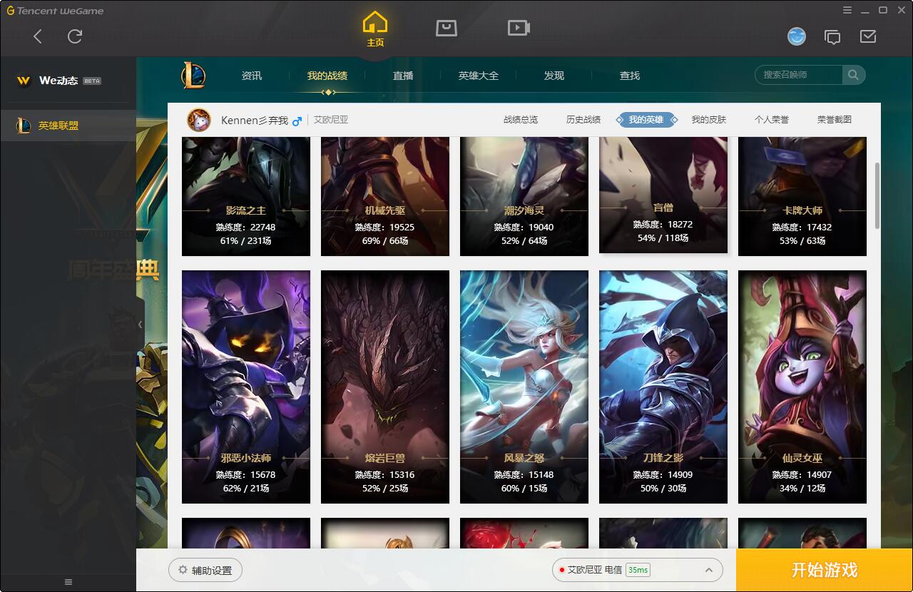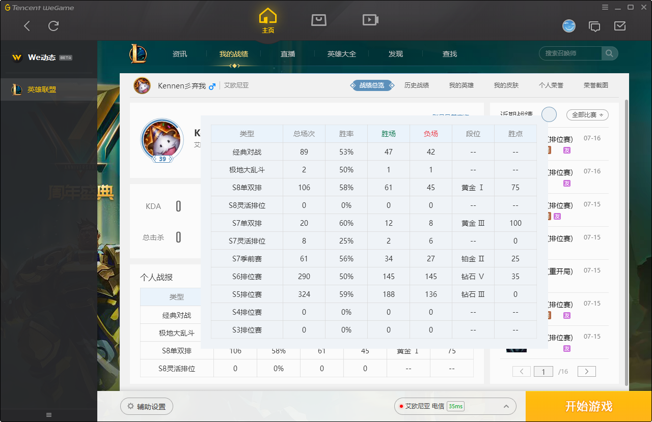 艾欧里亚高胜率号,前几个赛季都是钻石,当前段位黄金一,太久没玩破保护了,但隐藏分高,42个英雄,13个皮肤