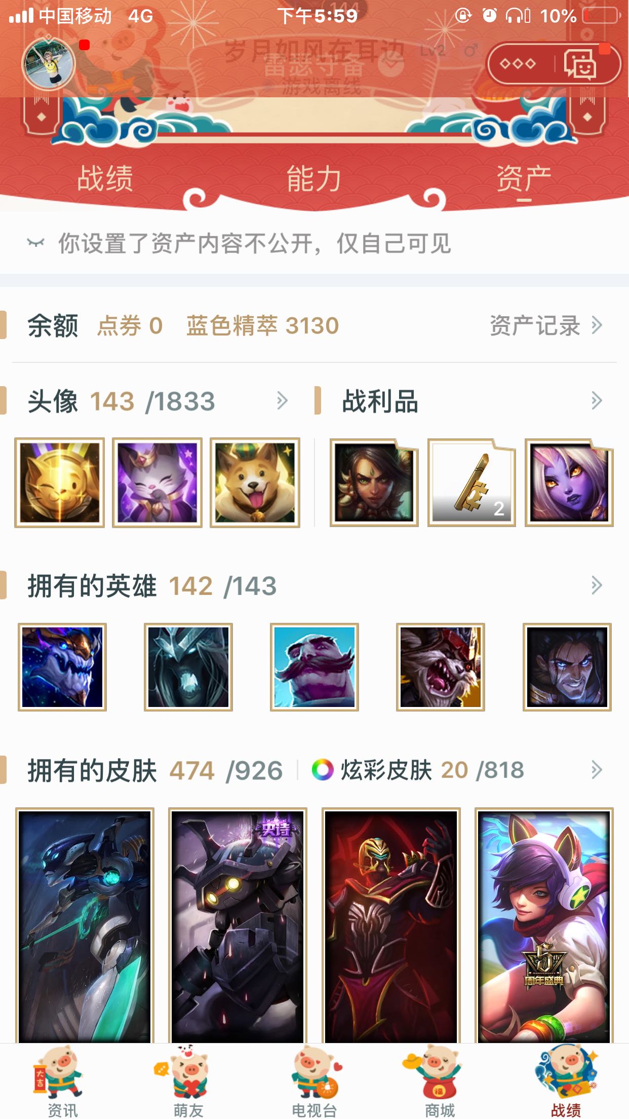 首页 > 租号大厅 > 撸阿撸 > 电信区/雷瑟守备 > 「电八」皮肤450+哥特'仙境火女 莲花之令 龙猴 冠军 源计划 各种限定皮肤