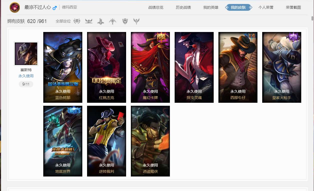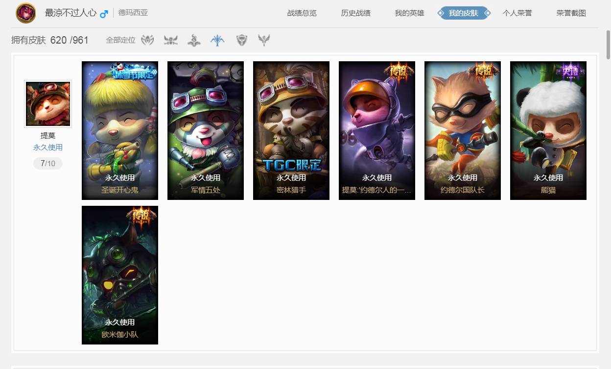 首页 > 租号大厅 > 英雄联盟 > 联盟五区/德玛西亚 > 德玛西亚皮肤号 全英雄620皮肤 超多年限精品皮肤 猴年全套/鸡年全套/各种限定 欢迎大家来玩