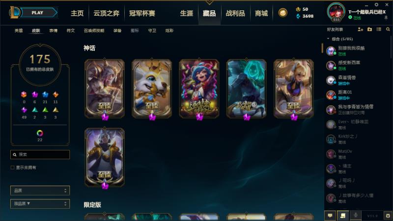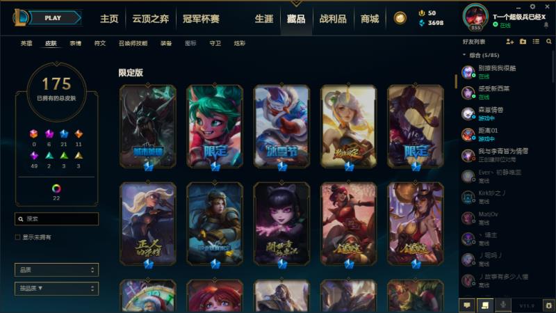 哥特萝莉,冰雪节剑圣,IG剑姬,金猪烈焰,钢铁军团拉克丝,狗年限定拉克丝,SKT婕拉、武器,泳池派对扎克,敲钟牛,至臻蕾欧娜等