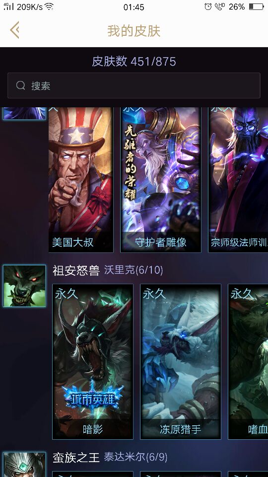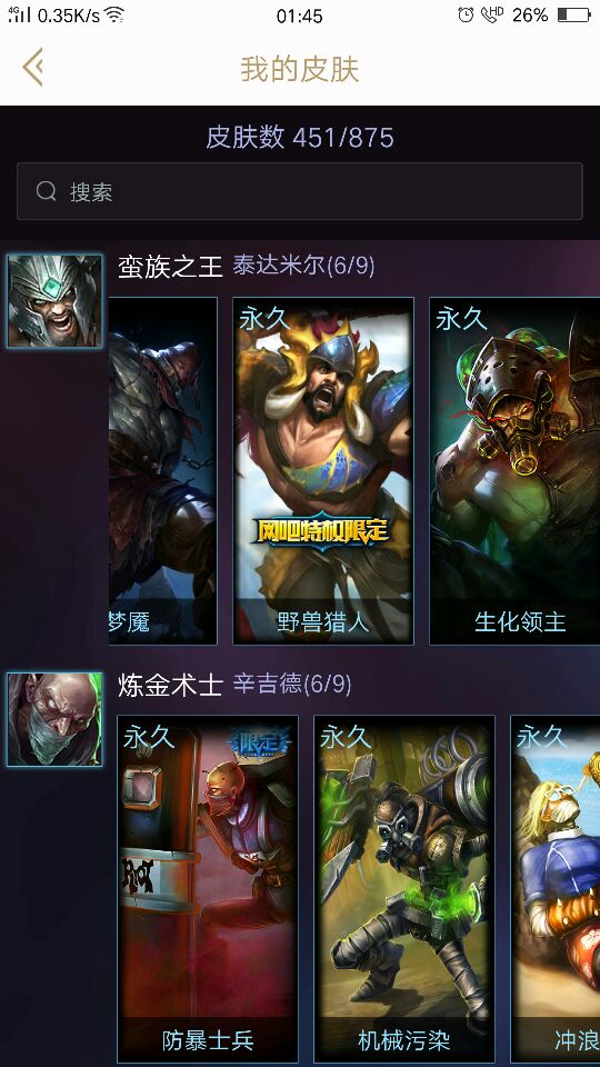 140英雄,450个皮肤加50炫彩 各种限定 如果想租号,可以查下我的账号再租