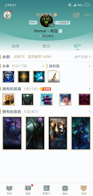 德玛西亚全人物 120级 一百多皮肤 黄金五骗子死妈