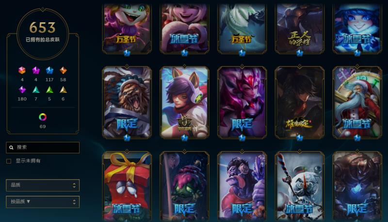 艾欧尼亚735p黑夜使者〓至臻光辉〓战斗学校伊泽瑞尔〓至臻卡莎〓至臻薇恩〓龙瞎〓库奇柯基〓玉剑男刀(全炫)〓花木兰〓猪年薇恩〓春晖女神〓奥斯曼船长〓二周年〓暗黑灵魂牛头〓庆典女皇〓猴年女警〓电玩锐雯