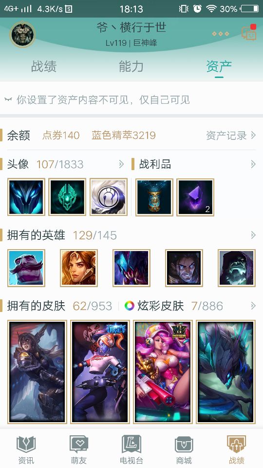 137英雄103皮肤,可排位可灵活,什么都可以,只要不把号玩废,上天都行