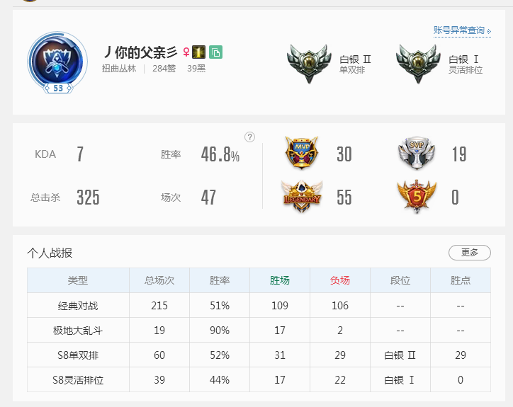 ID:丿你的父亲彡 (可以用wegame查实时段位情况)!禁止挂机逃跑请文明游戏,谢谢亲们!
