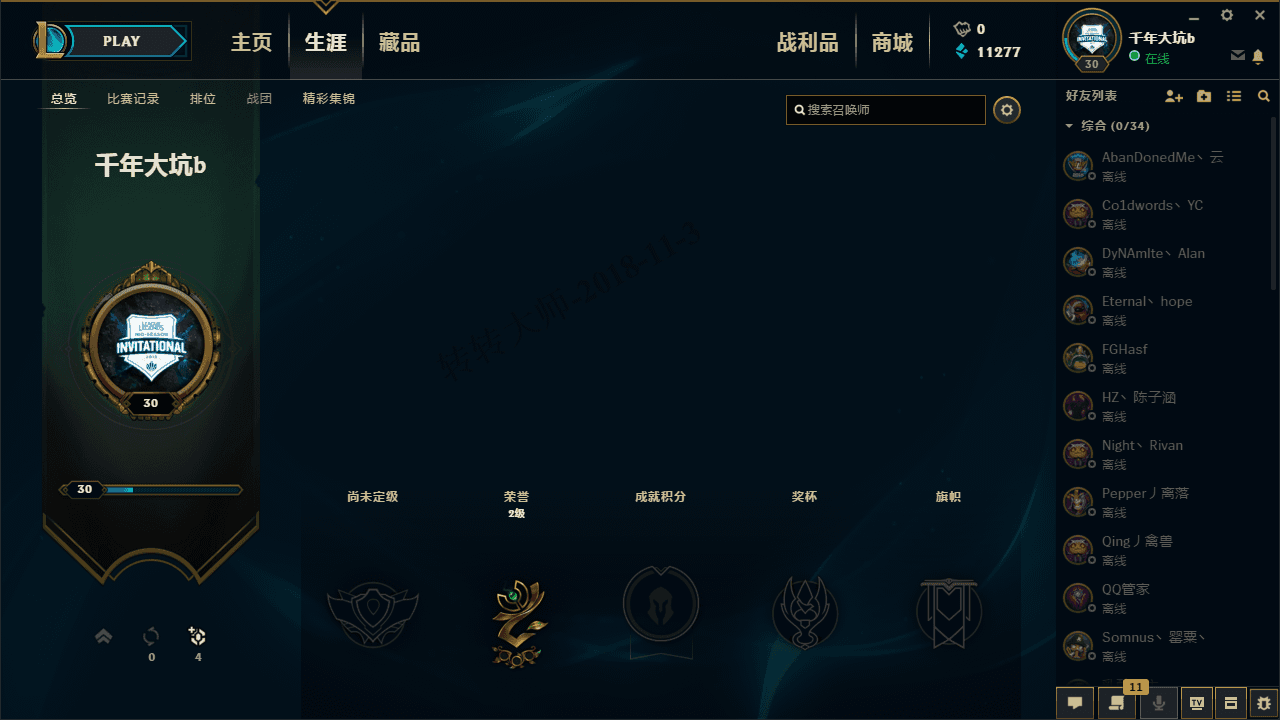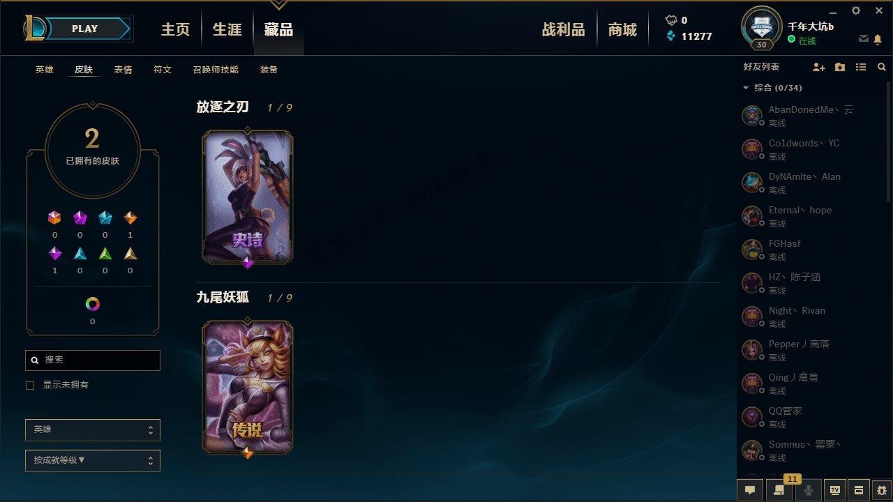 【GG商户岑弟】影流账号30级新号29个英雄2皮肤首次租号有1万11277的蓝色精萃使用可自行购买英雄看截图。无段位可排位