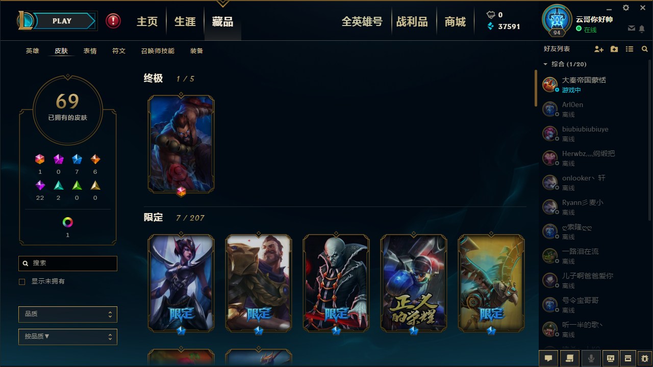 黑色玫瑰电十妹子超多141满英雄69皮肤灵魂行者凤凰吸血鬼限定