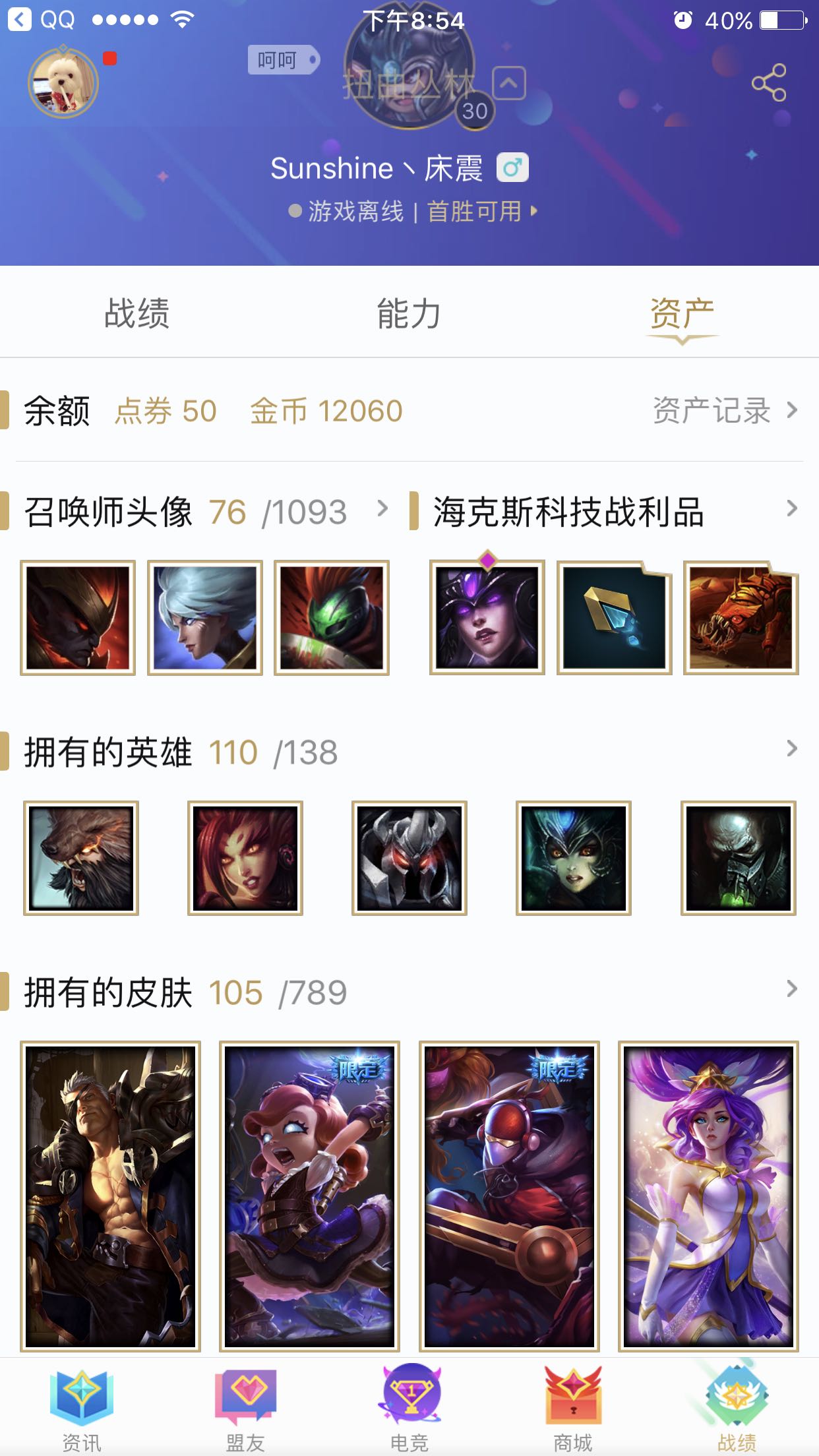英雄110,皮肤108,鸡年限定蔚,典藏,史诗,每个位置英雄几乎都有皮肤,段位黄金1