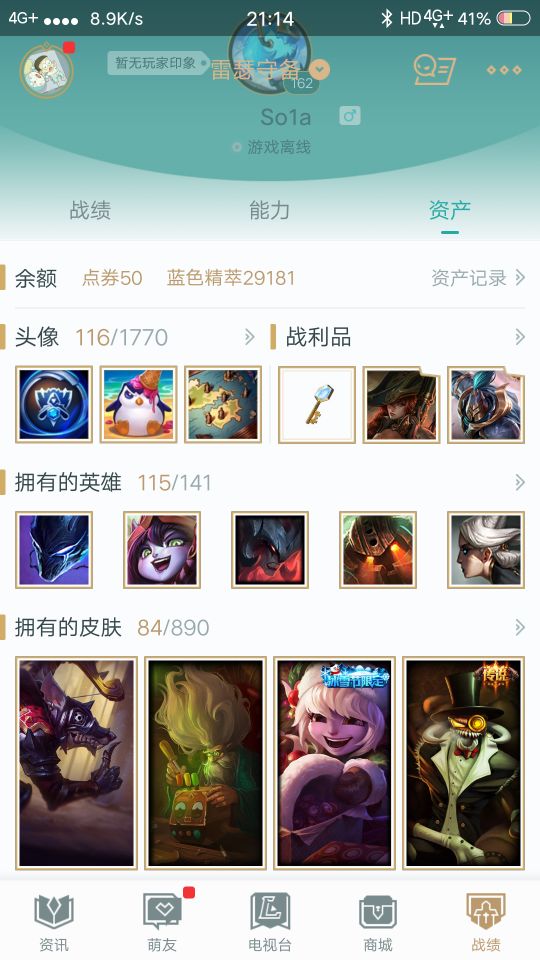 首页 > 租号大厅 > 英雄联盟 > 联盟二区/雷瑟守备 > 雷瑟守备八区 可排位 随意截了几张图 adc皮肤很多