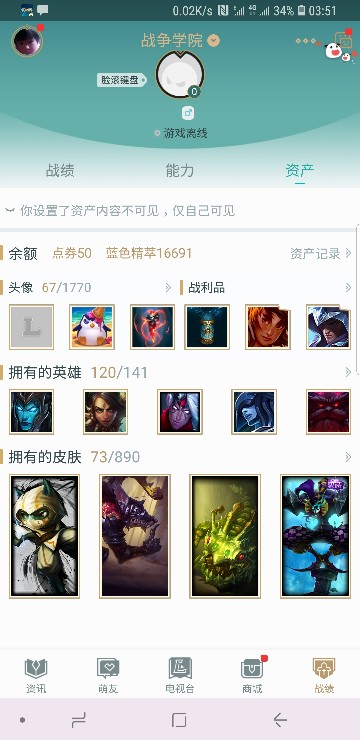 战争学院靓号:120英雄,73精品皮肤,欢迎拿来排位练手以及各种带妹纸。