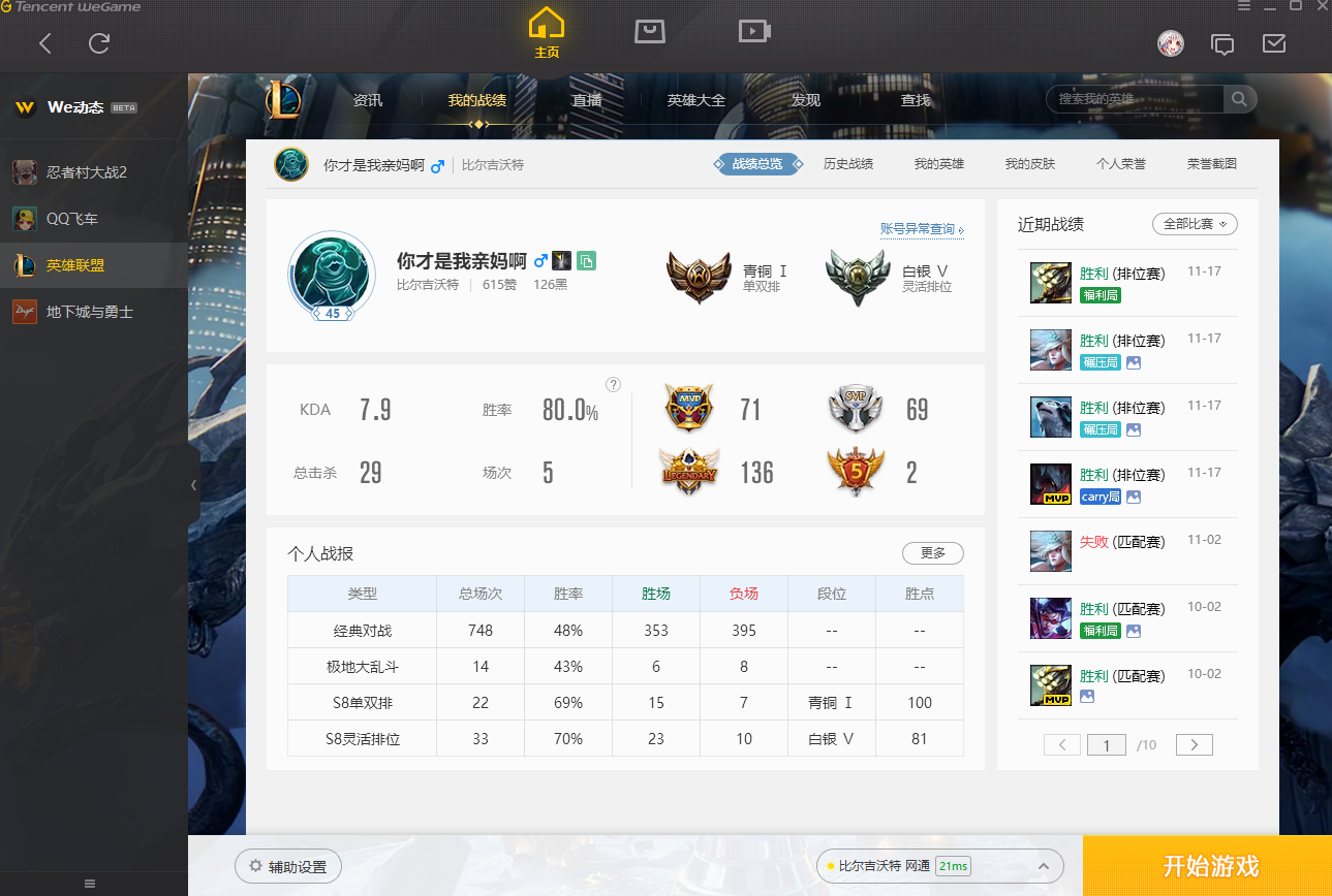 • 游戏区服:英雄联盟 / 联盟四区 / 比尔吉沃特