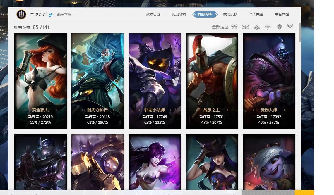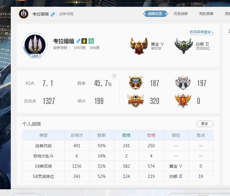 首页 > 租号大厅 > 英雄联盟 > 联盟二区/战争学院 > 老账号 《战争学院》等级166 英雄85